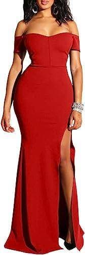 YMDUCH Women's Off Shoulder High Split Evening Gown - Red