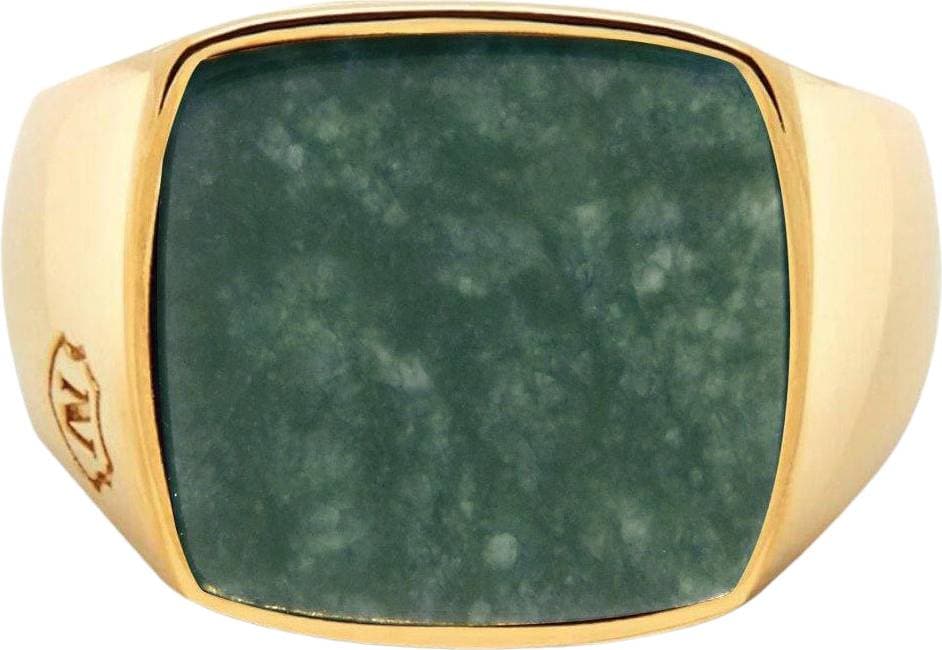 Nialaya Men's Gold Plated Signet Ring With Green Jade Herr Ringar